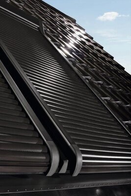Přesvědčí Vás zejména moderním designem, tvarově přizpůsobeným celkovému vzhledu okna. To platí pro všechna provedení - manuální rolety, elektricky ovládané rolety a rolety na solární pohon. Hliníkové lamely jsou spojeny nosnou tkaninou s vysokou pevností. Termické oddělení vnitřních a vnějších profilů lamel zlepšuje tepelnou izolaci. Součástí manuální rolety je ovládací tyč délky 100 cm, u ostatních je nutno objednat ovladač objednat zvlášť. Standardní barva rolety je Antracit Metallic (R703).