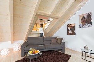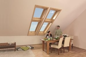 Nejlepší výhled má člověk většinou, když stojí. Proto je osa otáčení kyvného střešního okna Designo R7 umístěna na rozdíl od běžných kyvných oken v horní třetině okna. Zbavíte se tak rušivého okenního křídla, které zasahuje dovnitř, brání ve výhledu nebo dělá z cesty k otevřenému oknu překážkovou dráhu. Přesně podle principu společnosti Roto – „Více volnosti. Více pohodlí.“ – můžete i u výsuvně kyvného okna Designo R7 bez problémů ovládat všechny jeho funkce jedinou klikou, která je pro lepší dosažitelnost umístěna v dolní části křídla. Otevírání, větrání a zavírání tak už nepředstavuje sportovní výkon. Velmi úzký profil rámu zaručuje, že se do obytného prostoru dostane hodně světla. A pocit bezpečí dodává tříbodové zajištění střešního okna s výborným těsněním. Vhodné pro umístění níže nad podlahou, osa otáčení v horní čtvrtině rámu, volný přístup k oknu, křídlo nezasahuje do interiéru, klika na spodní hraně křídla pro pohodlné ovládání, bezpečnostní mycí poloha, spárové přivětrávání.